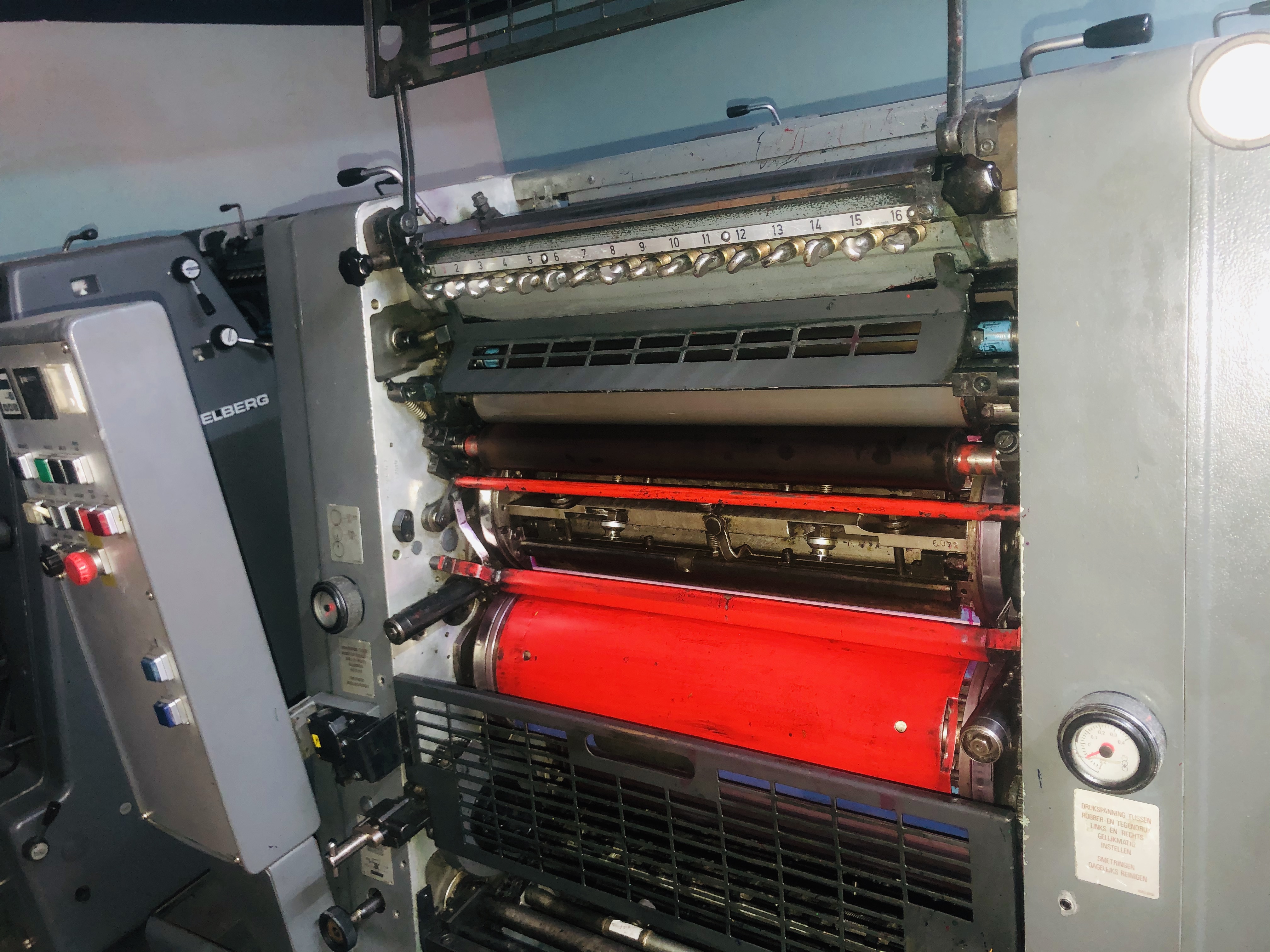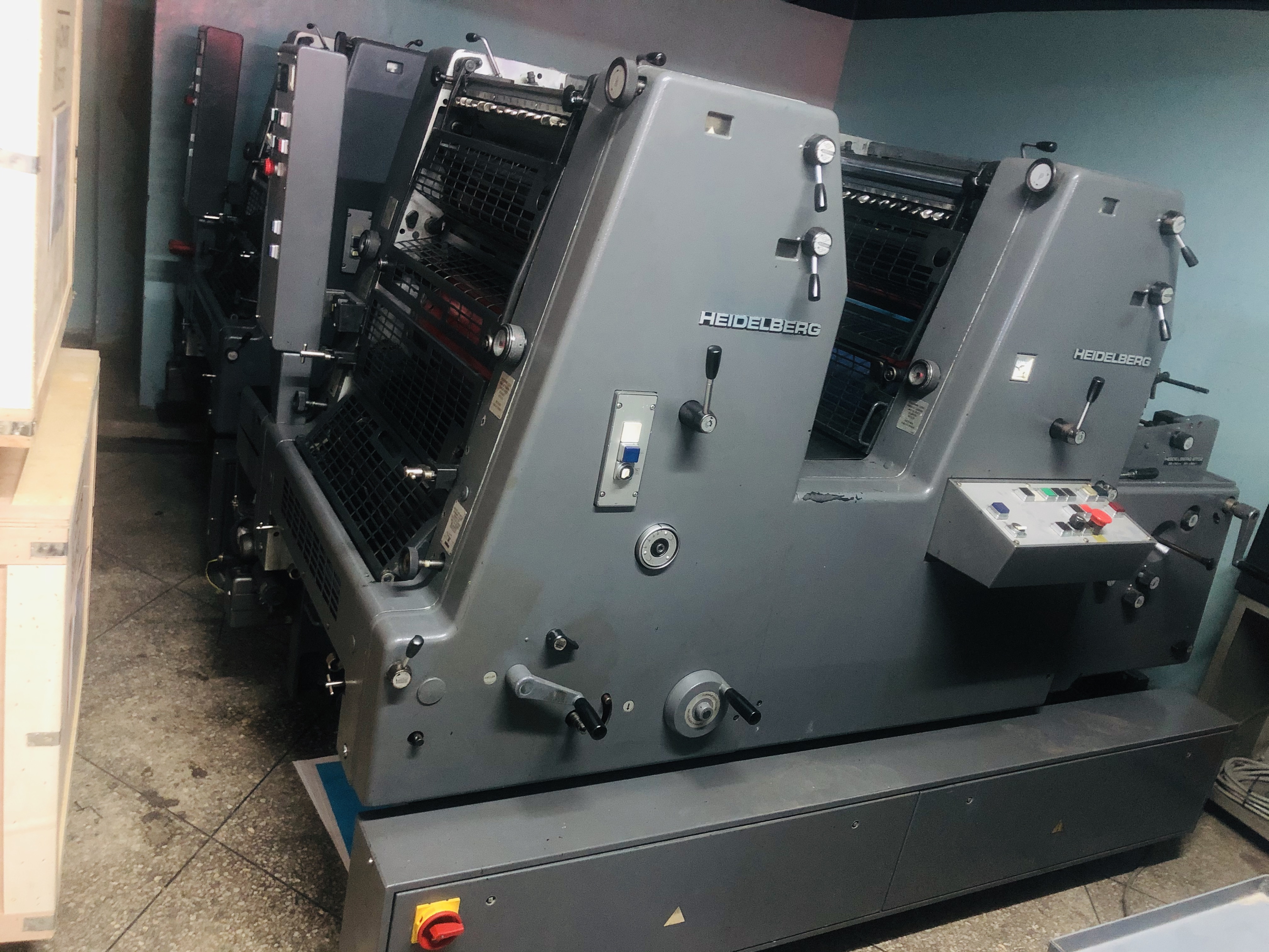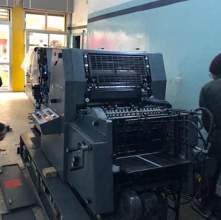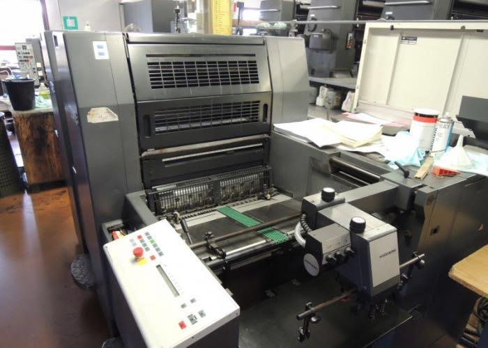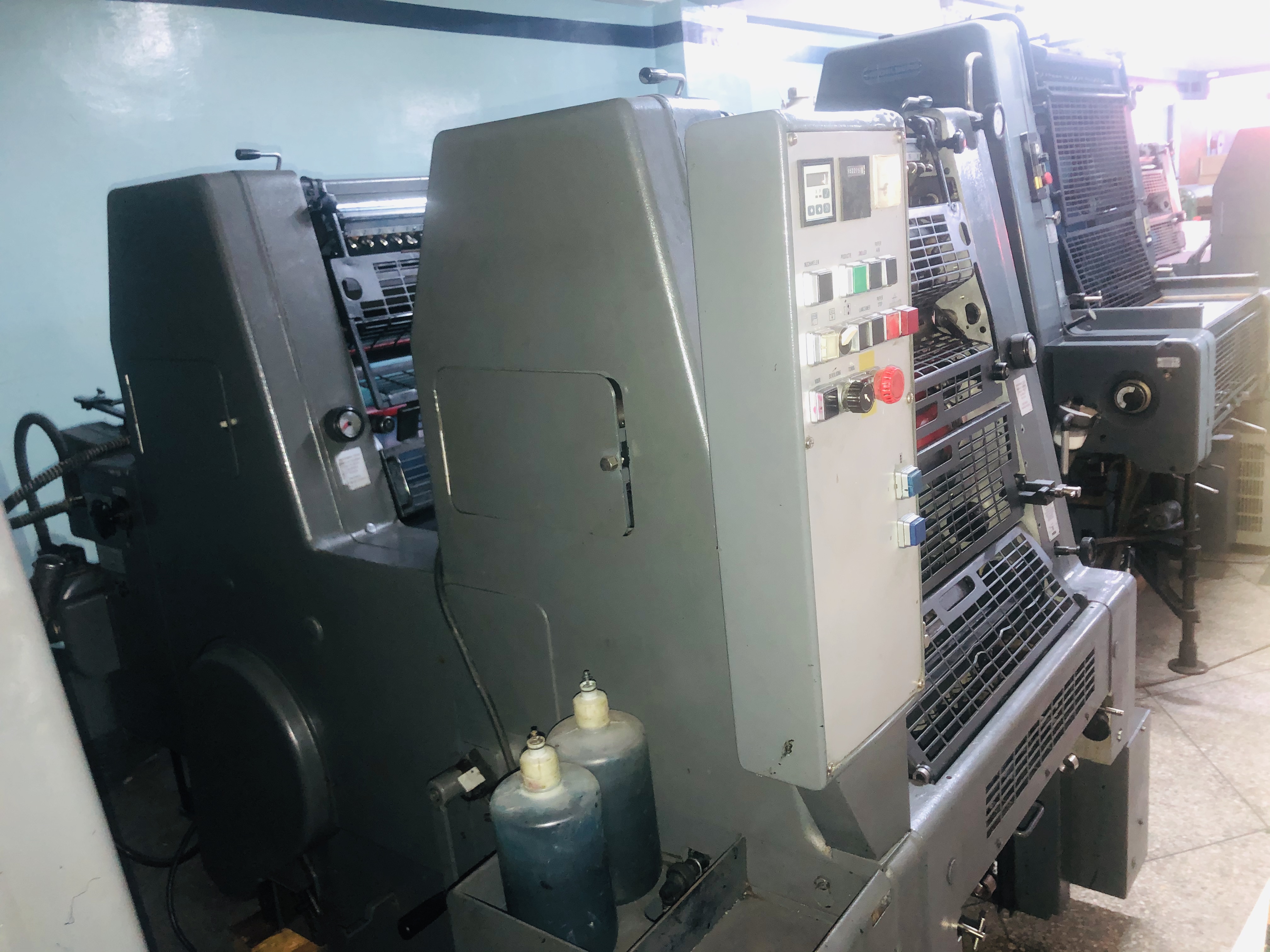 Marque : HEIDELBERG ; Type : SM 52 ; Couleur : Deux ; Format : 37*52 ; Calage automatique des plaques AUTOPLATE ; Mise au format automatique ; Pupitre CP TRONIC ; Mouillage ALCOLOR avec Refrigeration ; Tous lavages automatiques (blanchets, rouleaux, cylindre de marge) ; Antimaculateur ; Vitesse : 15.000 feuilles/heure ; Version Plus
