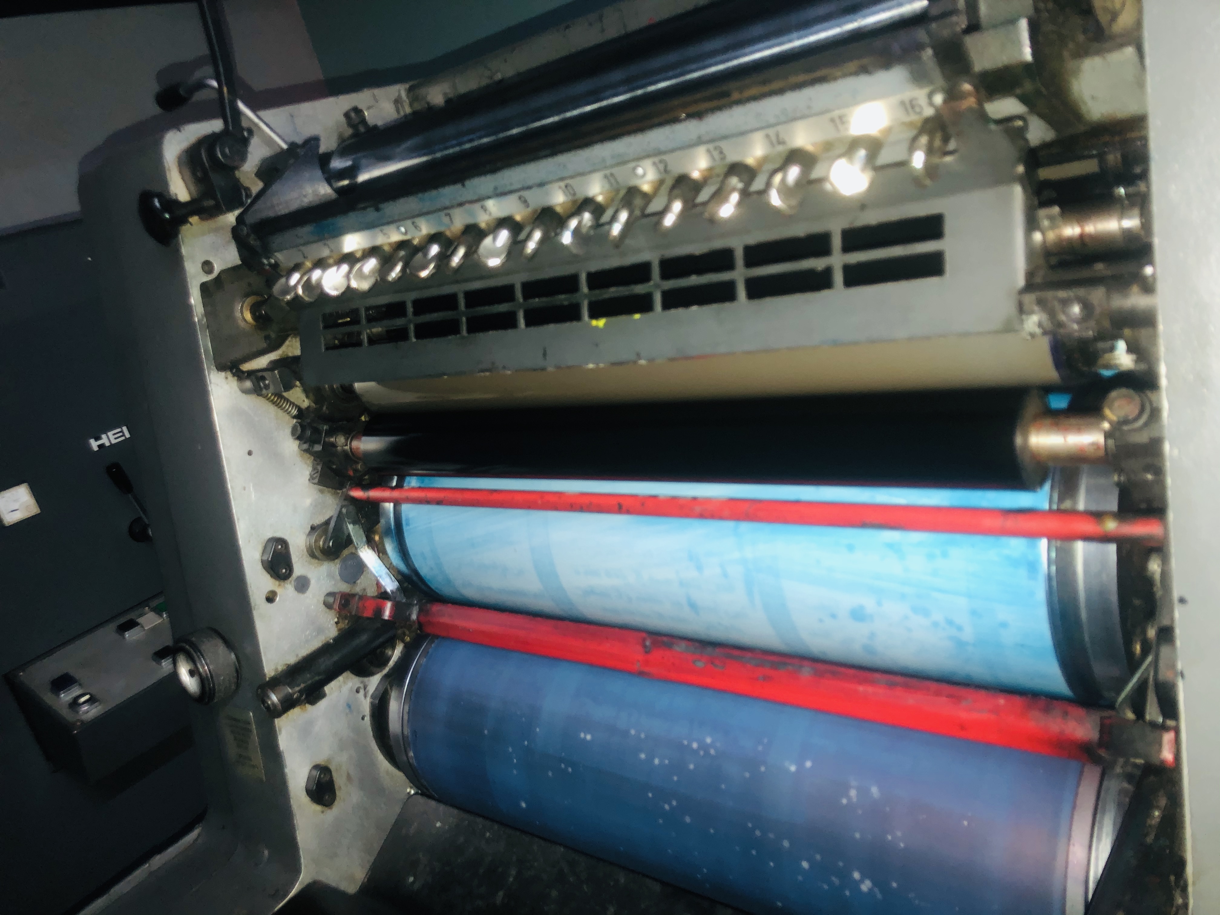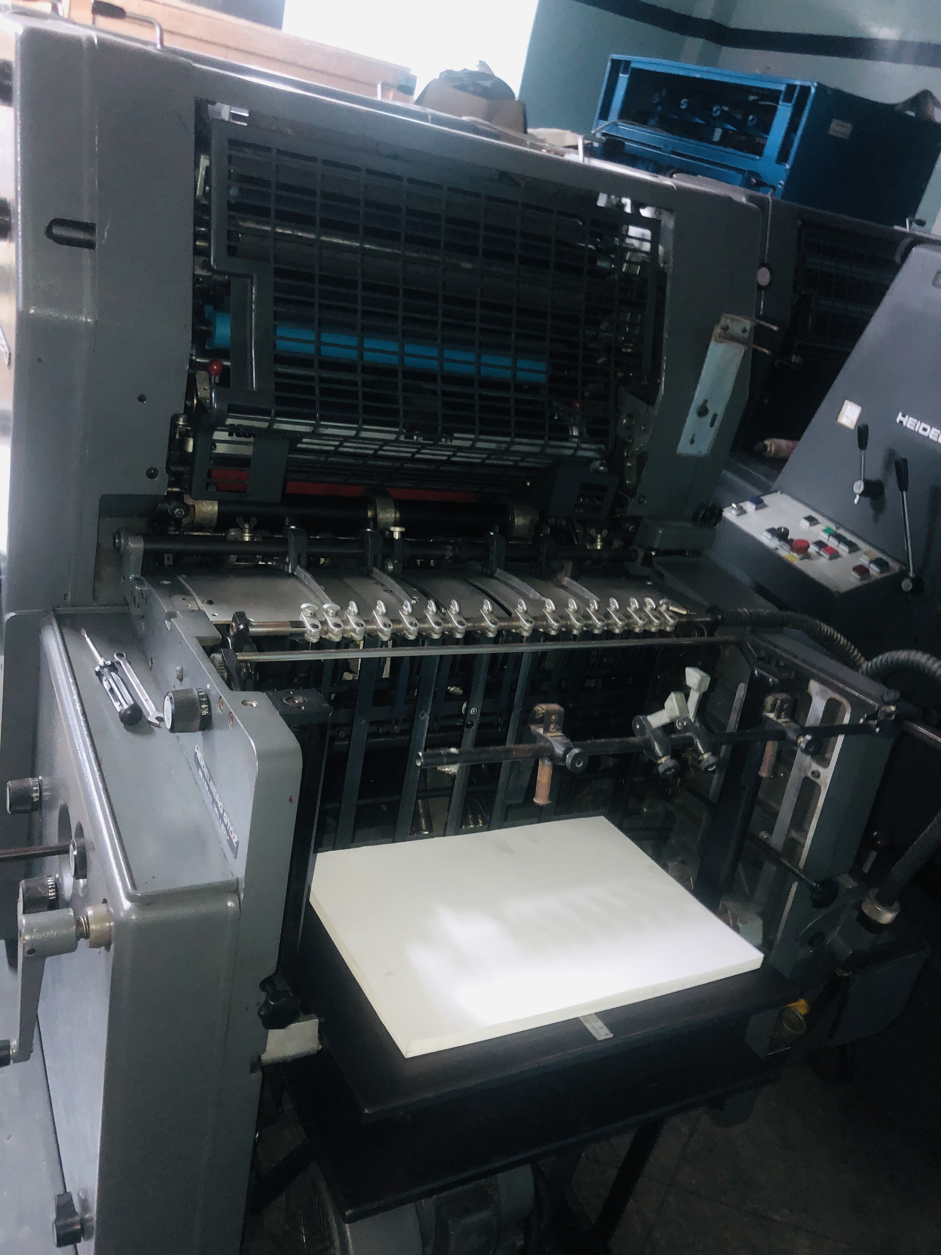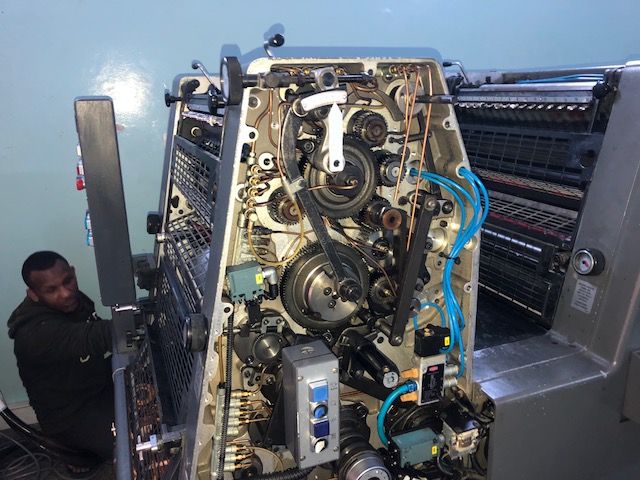 Marque : HEIDELBERG Type : GTOZ Année : 1991 Mouillage : ALCOLOR Format : 36*52 Version Plus Unité de Refroidissement BALDWIN 41 MIL Impression Machine en Production