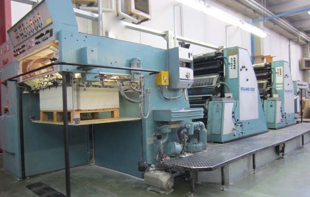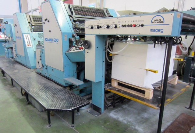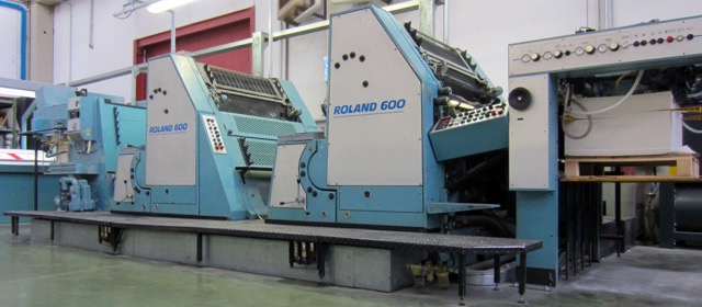 Marque : ROLAND ; Type : 604 3B ; Couleur : Quatre ; RCI 2 avec cassette de mémoire ; Mouillage : Rolandmatic ; Cremoplast ciller ; Couverture automatique rondelle BALDWIN ; Table d'aspiration de bande dans le chargeur ; MABEG alimentation ; Cylindre d'impression Chromé ; La tôle d'acier dans le chargeur ; Plaque Seel ; Poudre spryer GRAFIX Exactomat ; Antistaic ELTEX ; Pinces d'action rapide ; Système de registre Graphometronic