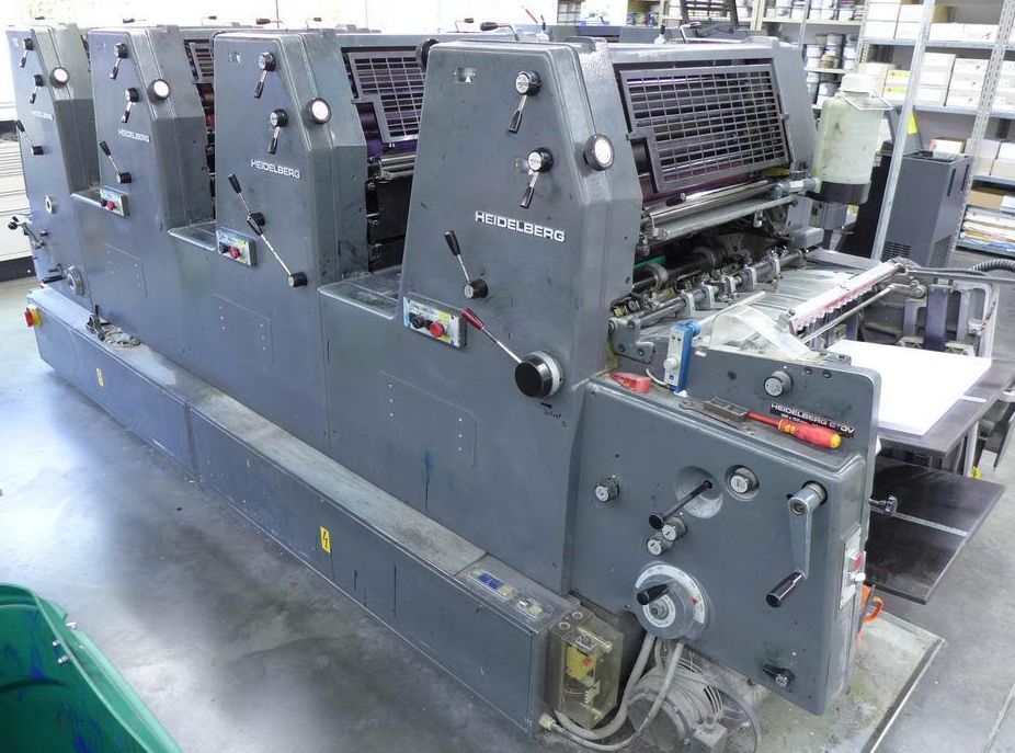 Marque : HEIDELBERG ; Type : GTOV 52+ ; Couleur : Quatre ; Format : 52*36 ; Mouillage Traditionnel ; Poudre multi-postions ; Machine en ligne ; Version plus ; Contrôle de double feuille