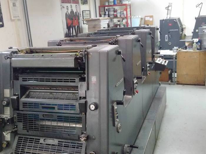 Marque : HEIDELBERG ; Type : GTO VP ; Format : 52*36 ; Couleurs : Quatre ; Mouillage Alcool ; Système de refroidissement BALDWIN ; En très bon etat